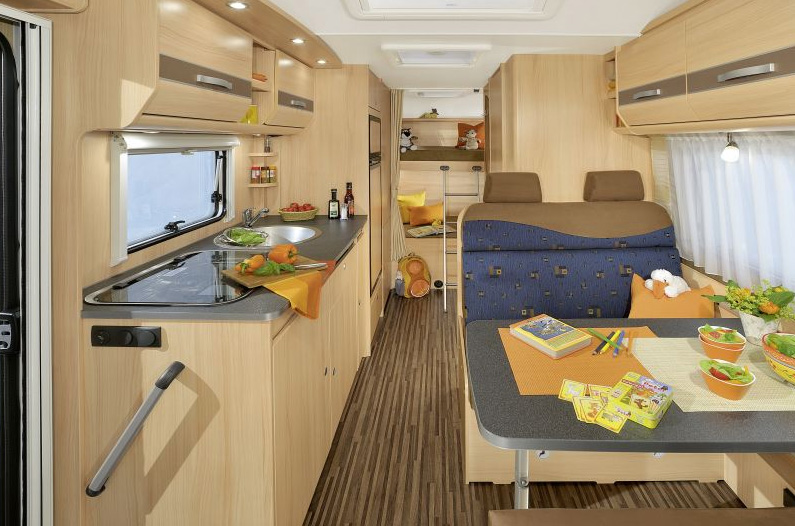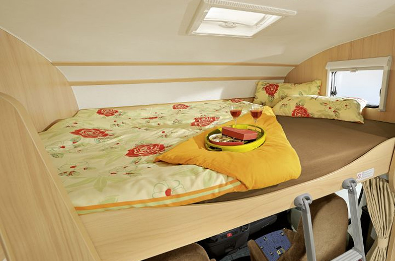 Unser » Dicker « ist die Alkoven-Version und begeistert vor allem Familien und Reisende mit großem Gepäck. Bei bis zu sechs Schlafplätzen bleibt nur noch die Frage wer wo schläft.
